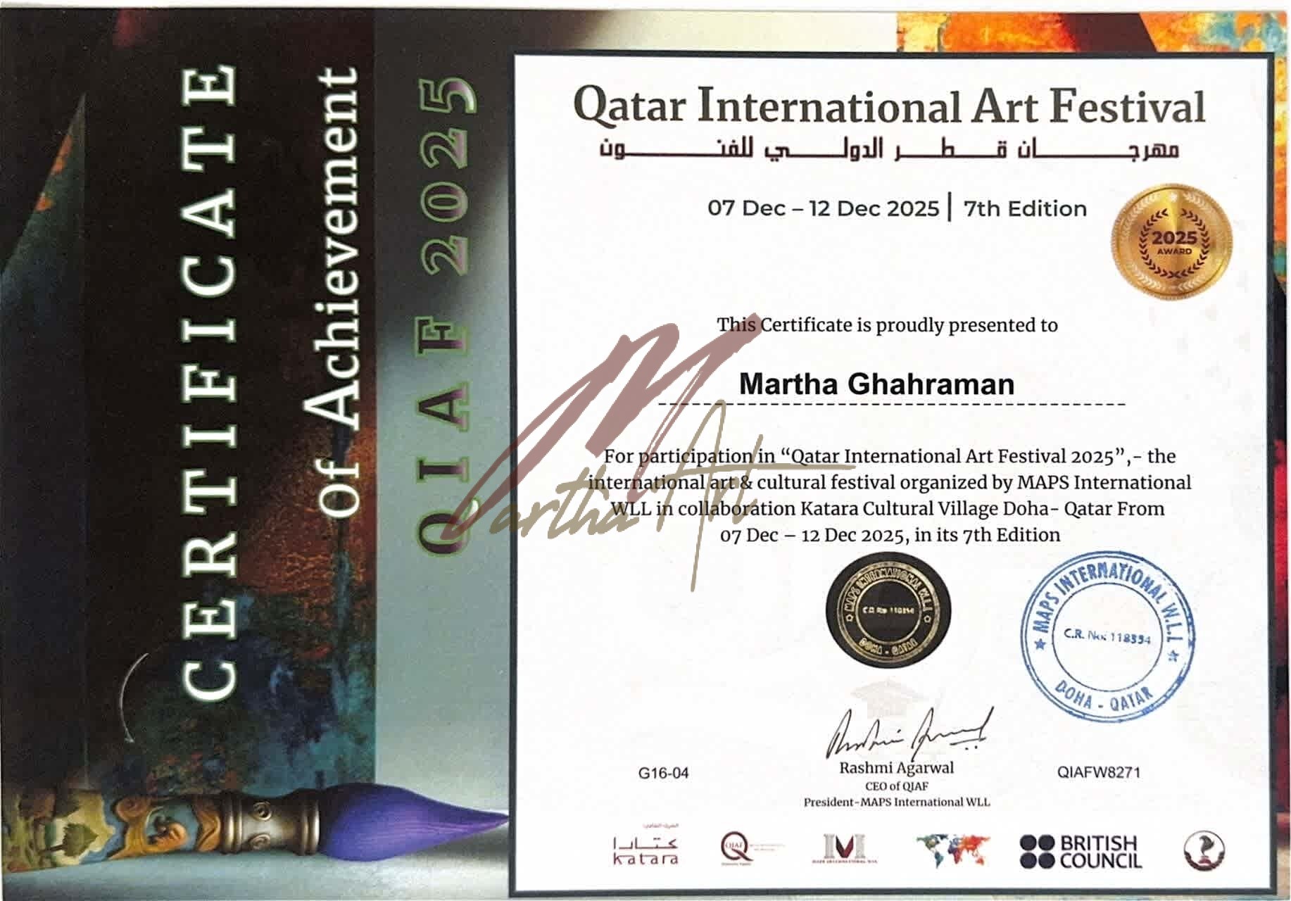 - شركت در فستيوال بين المللي فرهنگ و هنر قطر (QIAF) / هفتمین دوره / 7 تا 12 دسامبر 2025